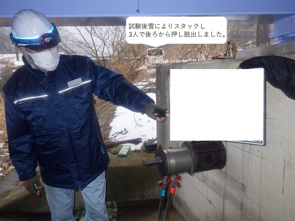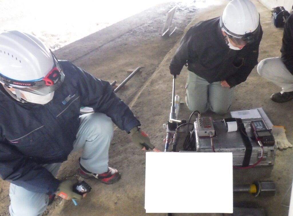 落橋防止構造の下部工ブラケット部のアンカーボルト引張試験です。