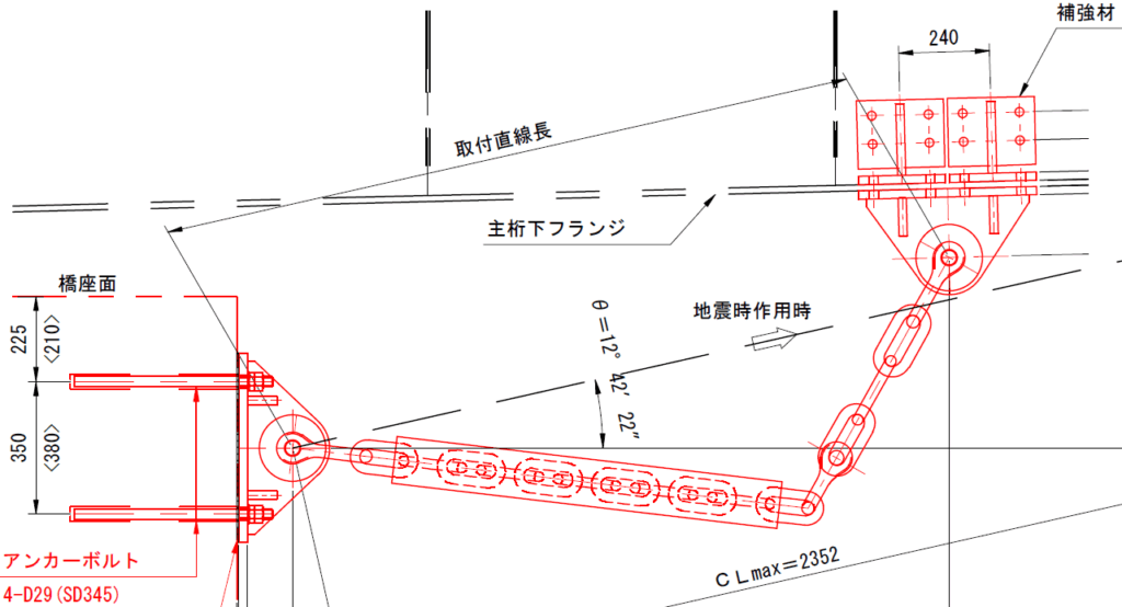 今回は後者の緩衝チェーンにより橋梁の上部と下部で連結する手法になります。
