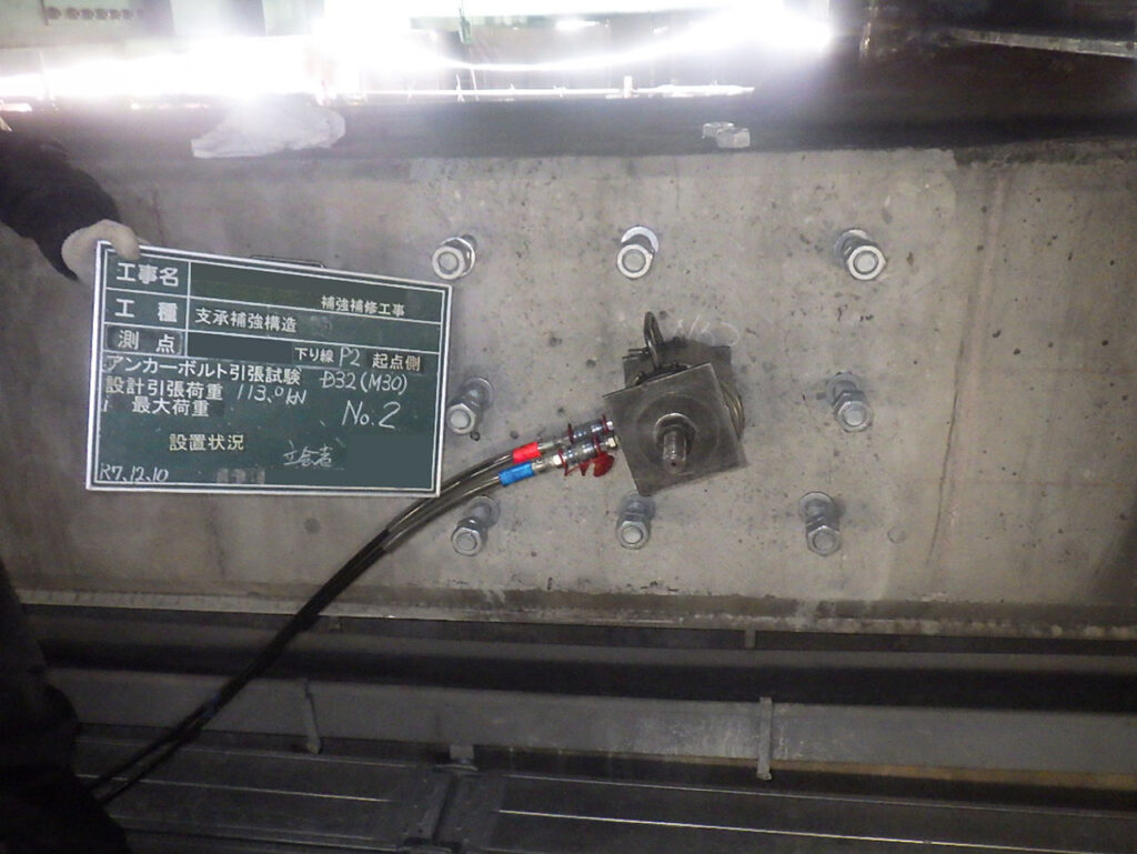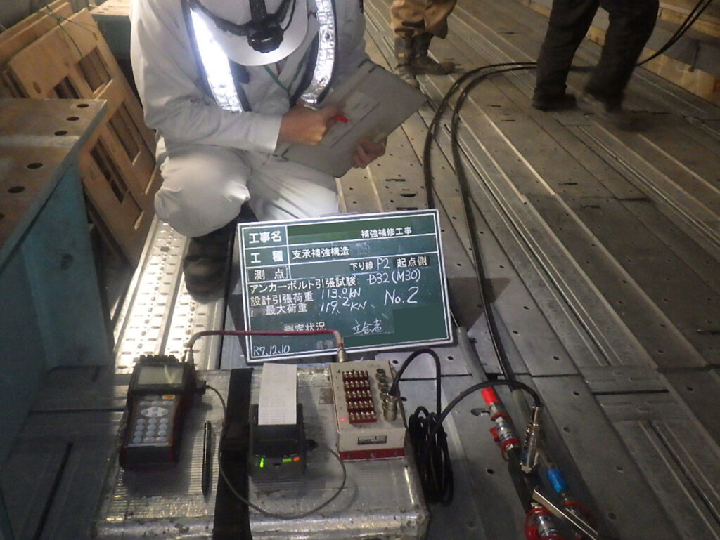 ②打設されたアンカーボルトに対して引張試験を実施(規定数)