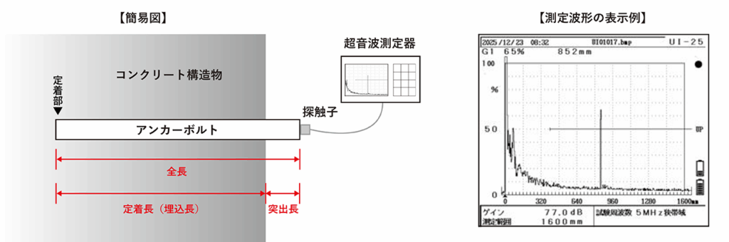 (超音波パルス反射法によるアンカーボルト長さ測定)