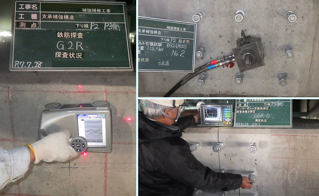作業内容:鉄筋探査、アンカーボルト引張試験、アンカーボルト定着長測定(超音波長さ測定)